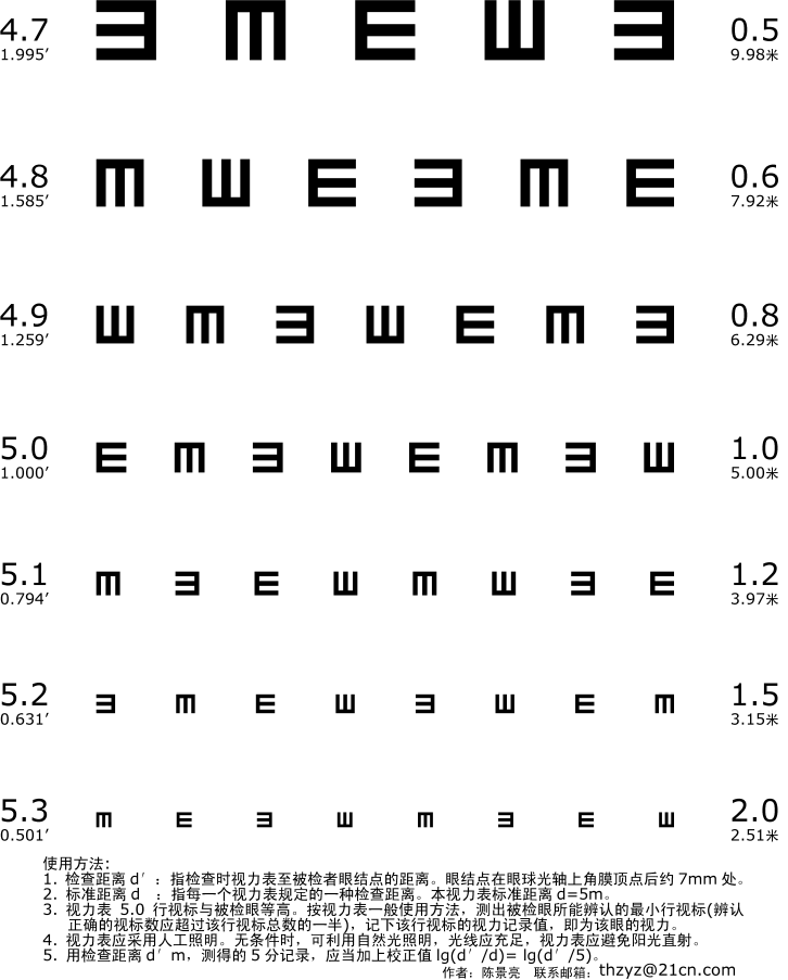 粘貼時保證視標行距均為 24mm。